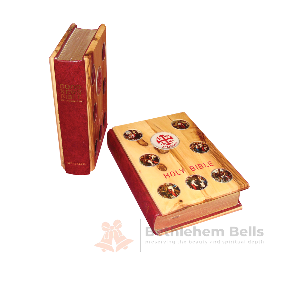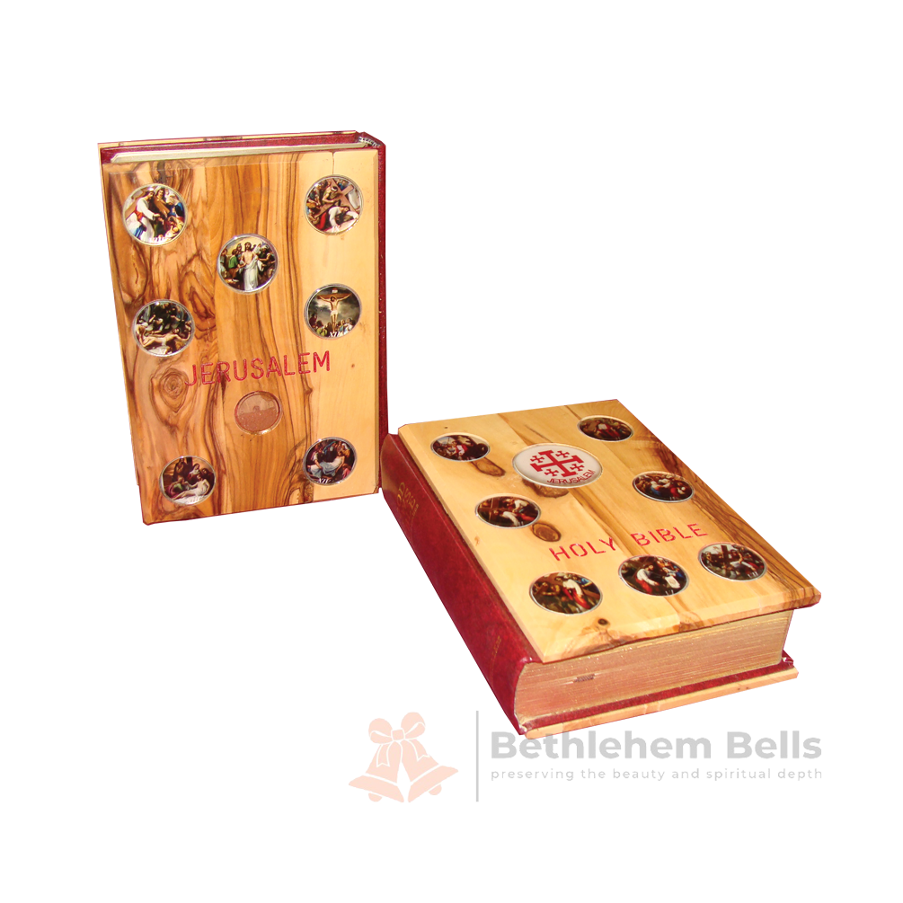 Holy Bible with Wooden Cover - 14th Stations of the Cross