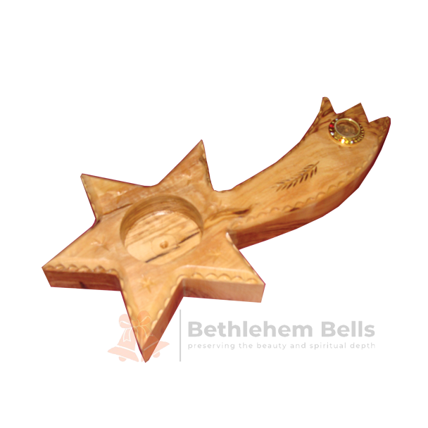 Olive Wood Bethlehem Star Candle Holder with Holy Soil