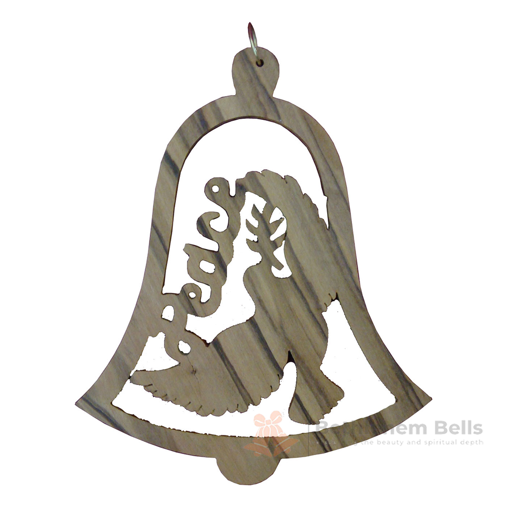 Olive Wood Bell Shape Christmas Ornament (Peace)