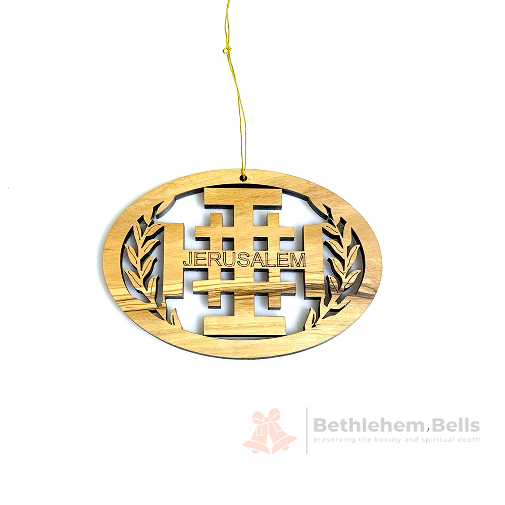 Olive Wood Christmas Ornament - Jerusalem Cross