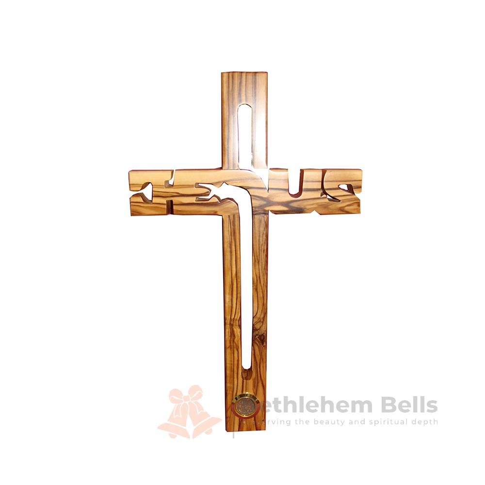 11.8" Olive Wood Jesus Cross with Holy Soil