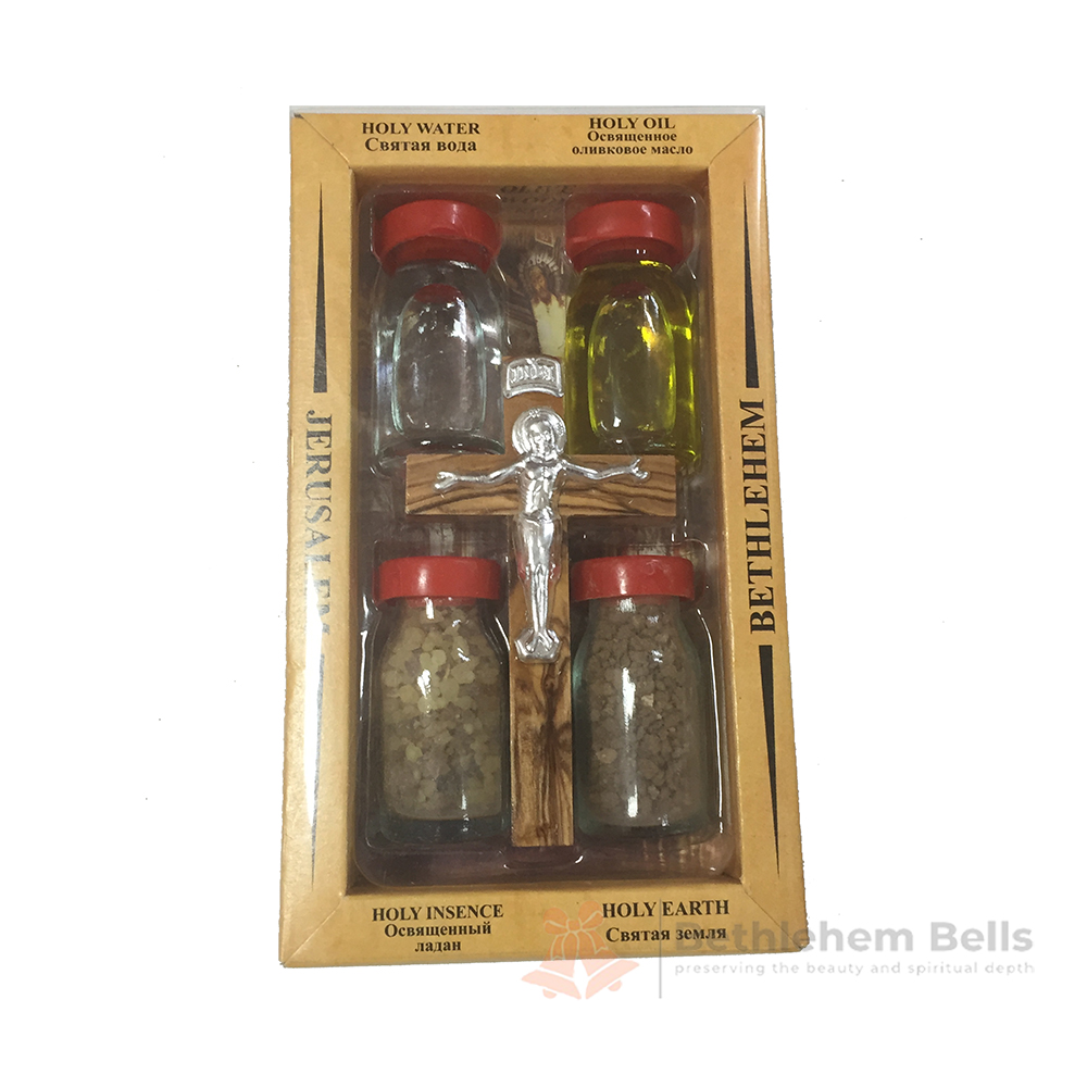 Olive Wood Cross with 4 Holy Elements